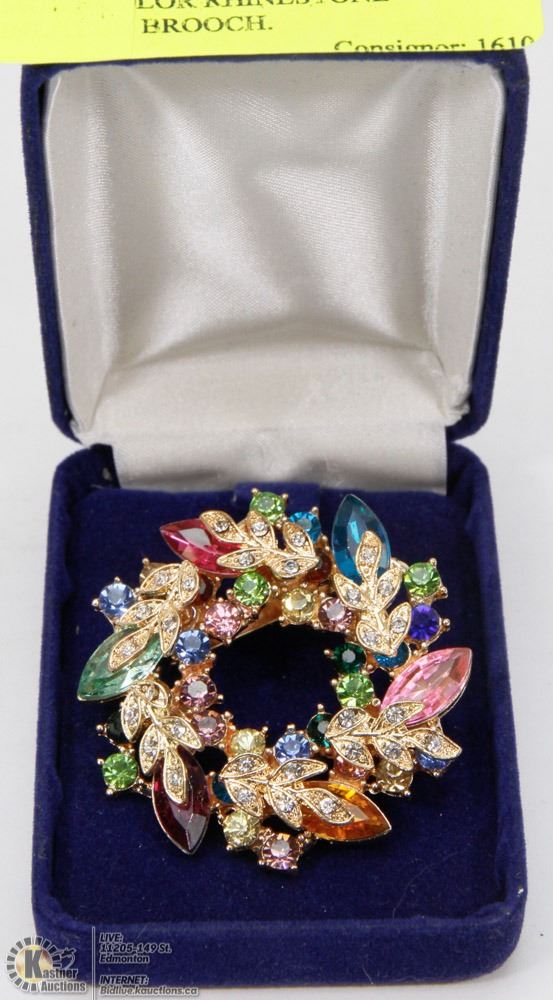 MULTICOLOR RHINESTONE INLAYED BROOCH.