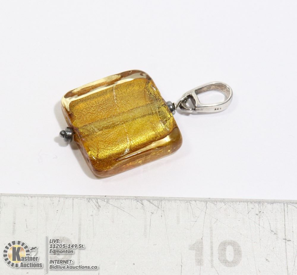 GOLD COLORED FOIL IN GLASS PENDANT WITH 925 ITALIAN SILVER BAIL.