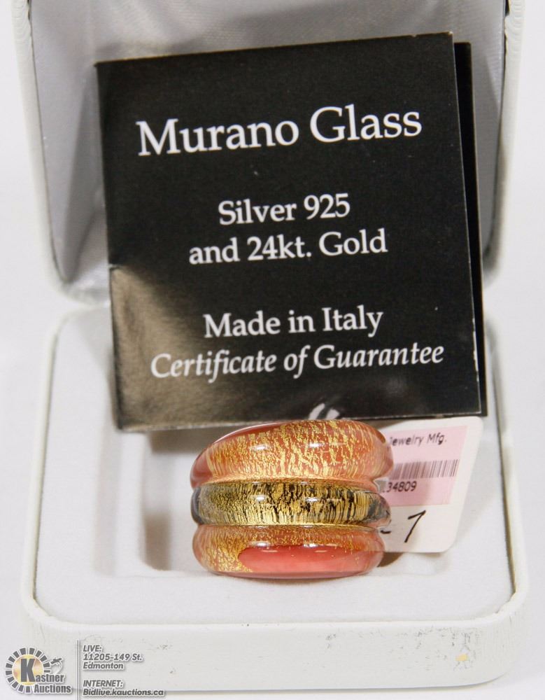 MURANO GLASS SILVER 24KT GOLD RING SIZE 7