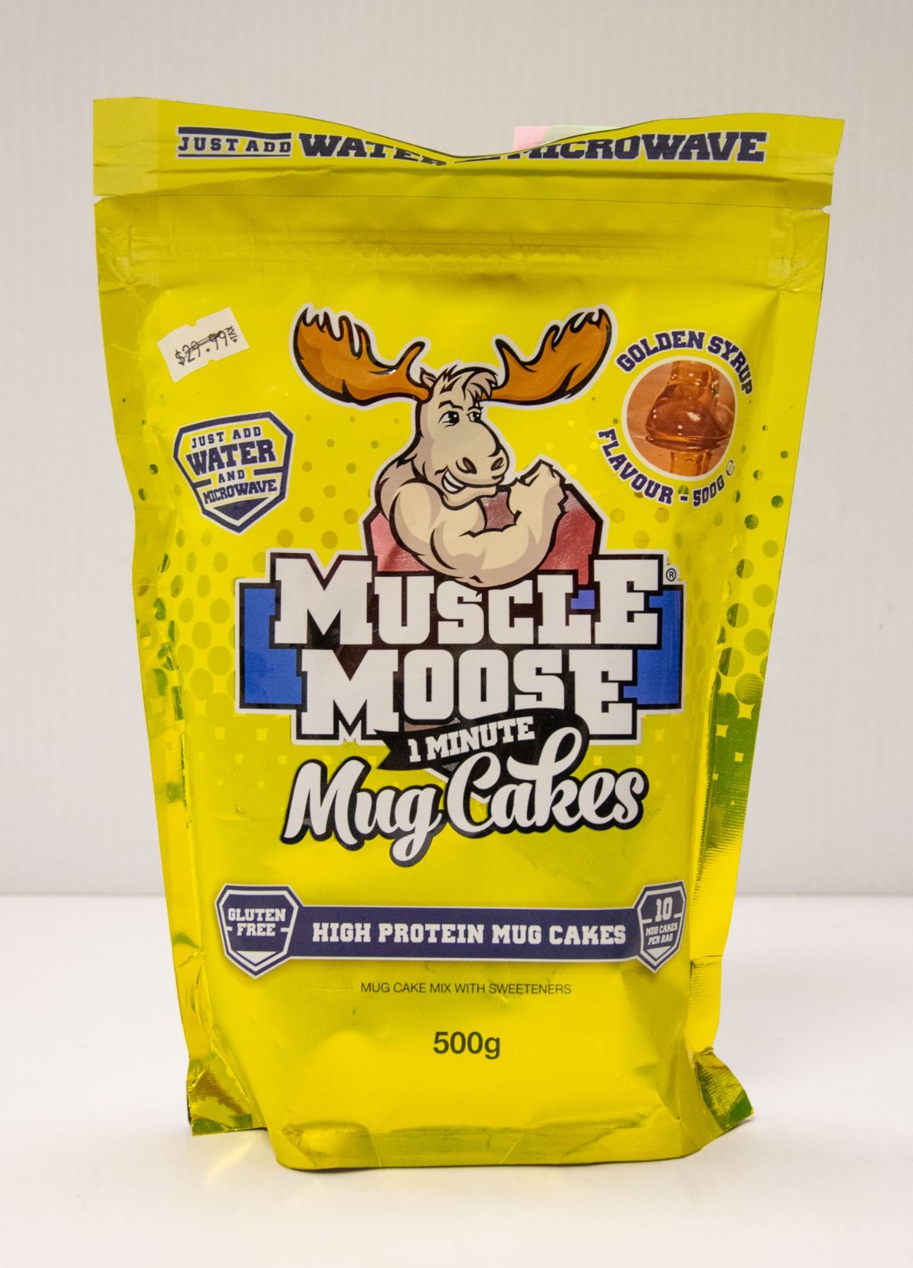 JUST ADD WATER AND MICROWAVE. 500G. 10 CAKES PER BAG. 20G PROTEIN PER SERVING. BEST BY 10/05/20