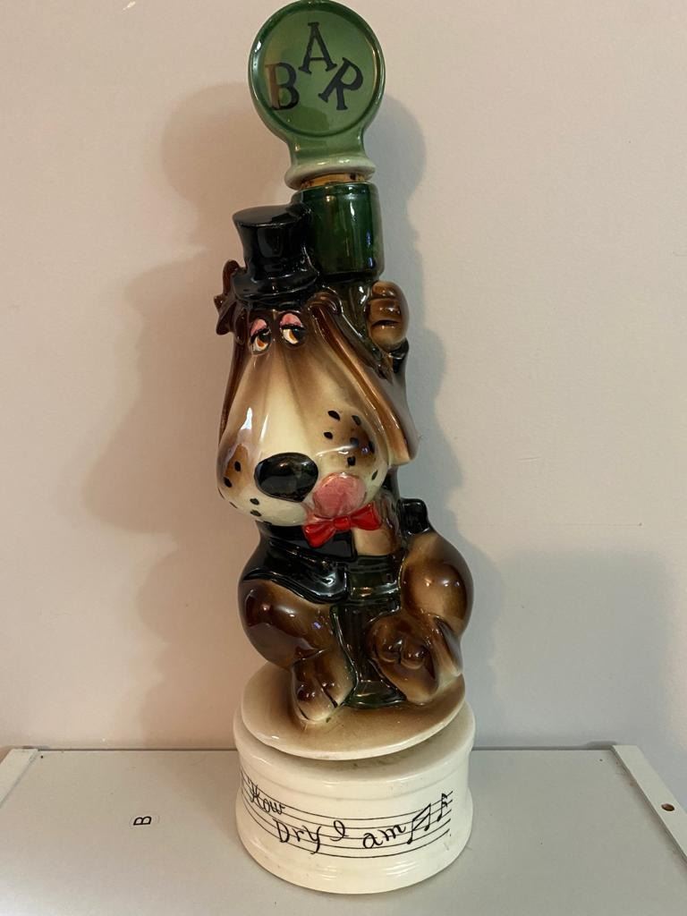 MUSICAL HOUND LIQUOR DECANTER-PLAYS HOW DRY I AM`