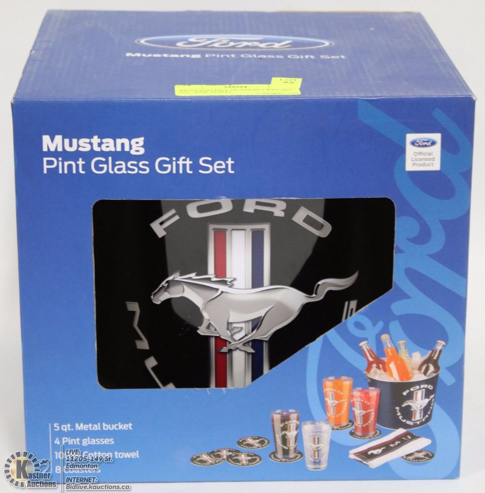 8 COASTERS 5QT METAL BUCKET, 4 PINT GLASSES NEW IN BOX