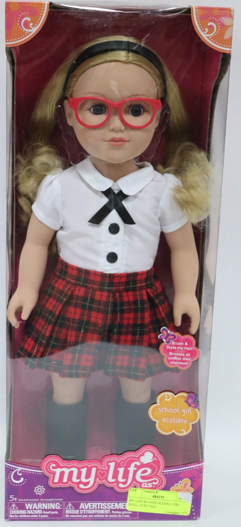 MY LIFE BLONDE SCHOOL GIRL DOLL, 18 IN TALL
