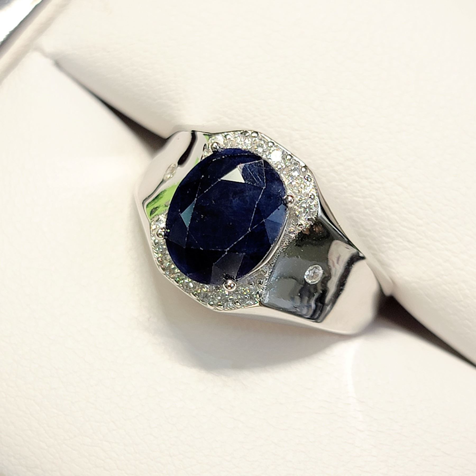 SILVER SAPPHIRE(4.15CT) RING (~SIZE 10) (~WEIGHT 6.8G)