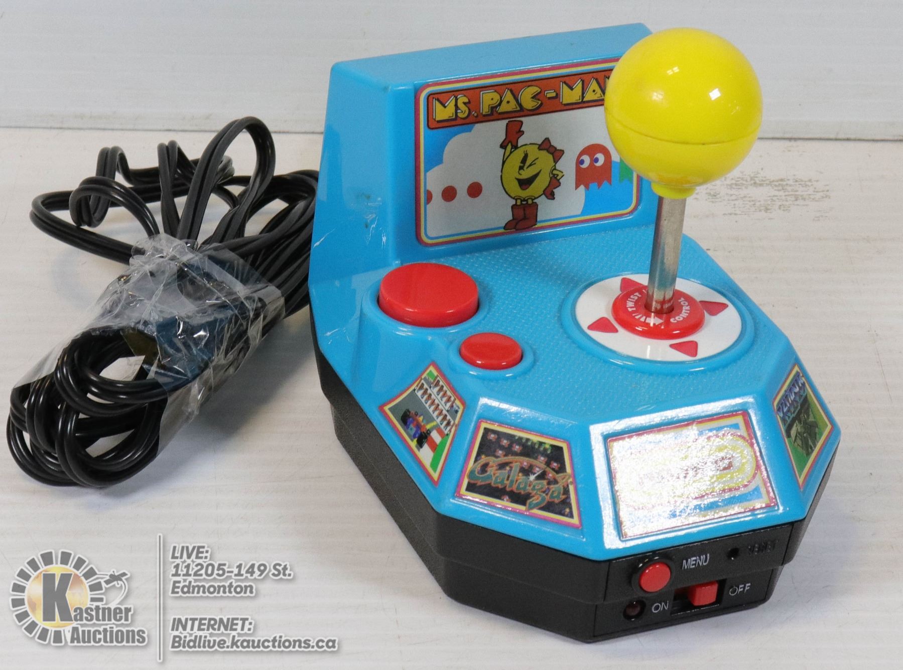 CONNECTS TO TV WITH RCA CABLES, WORKS ON BATTERIES. INCLUDES: MS. PAC MAN, GALAGA, POLE POSITION, MAPPY, XEVIOUS. VIDEO GAMES