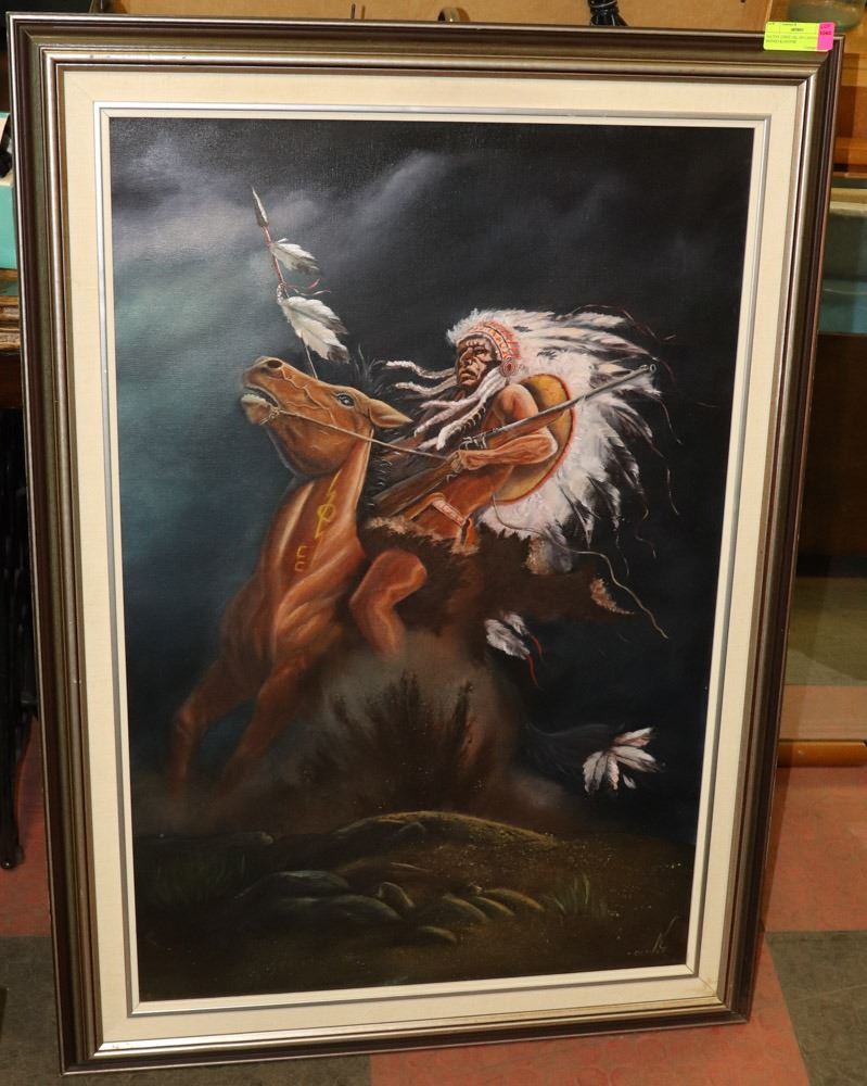 NATIVE CHIEF OIL ON CANVAS, SIGNED K.OLIVER