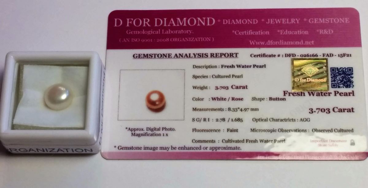 NATURAL 3.703 CT FRESHWATER PEARL GEMSTONE & COA