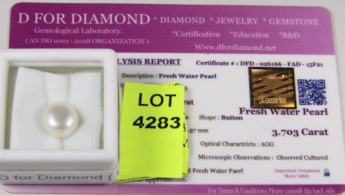NATURAL 3.703ct FRESHWATER PEARL GEMSTONE W/COA
