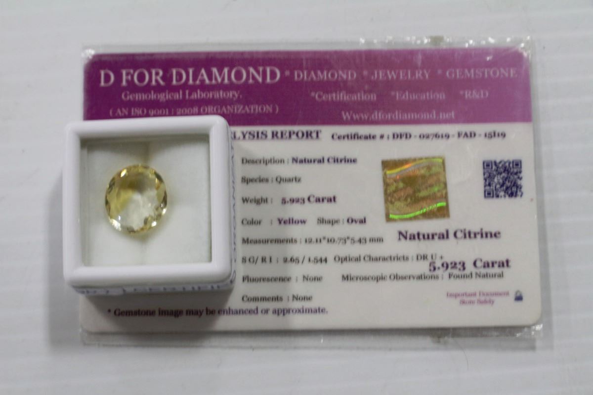 NATURAL CITRINE 5.92 CT WITH COA