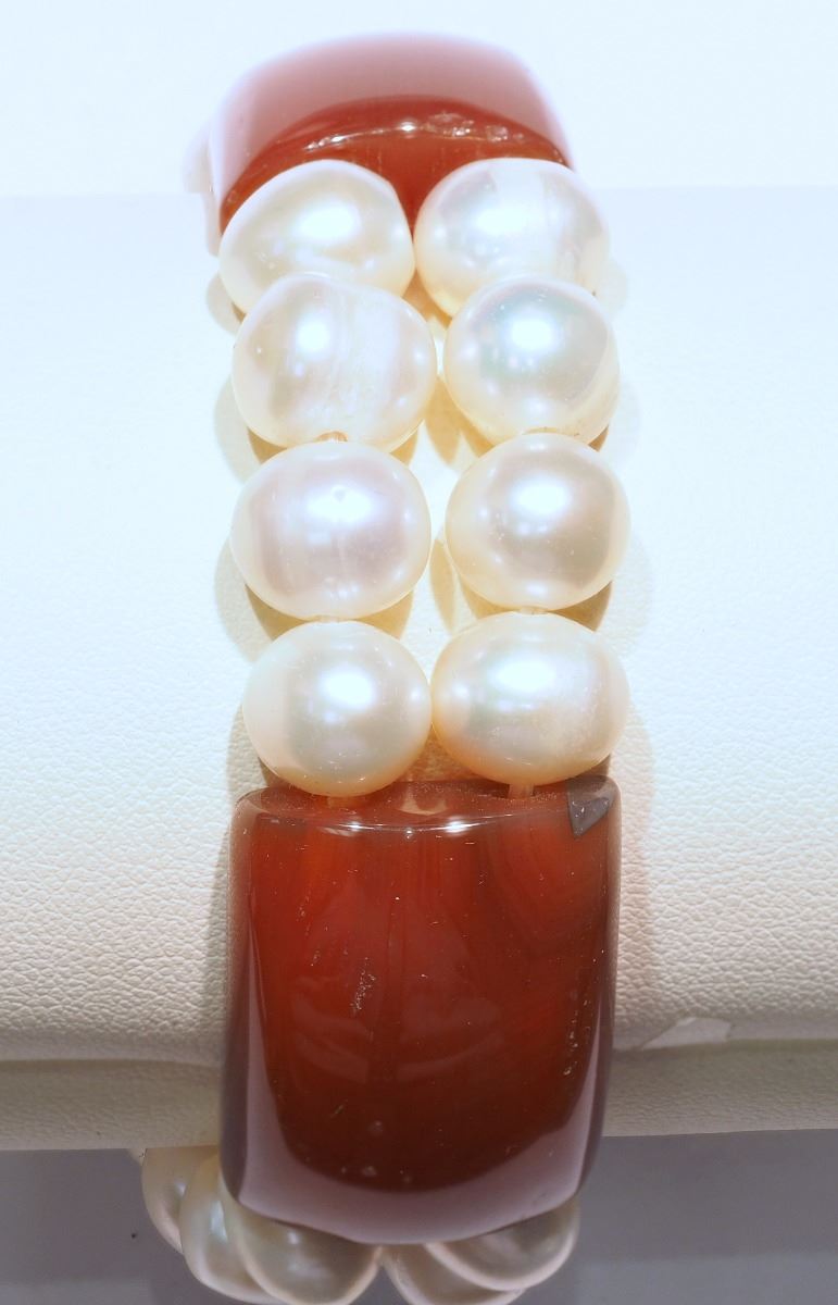 NATURAL FRESHWATER PEARL CARNELIAN BRACELET