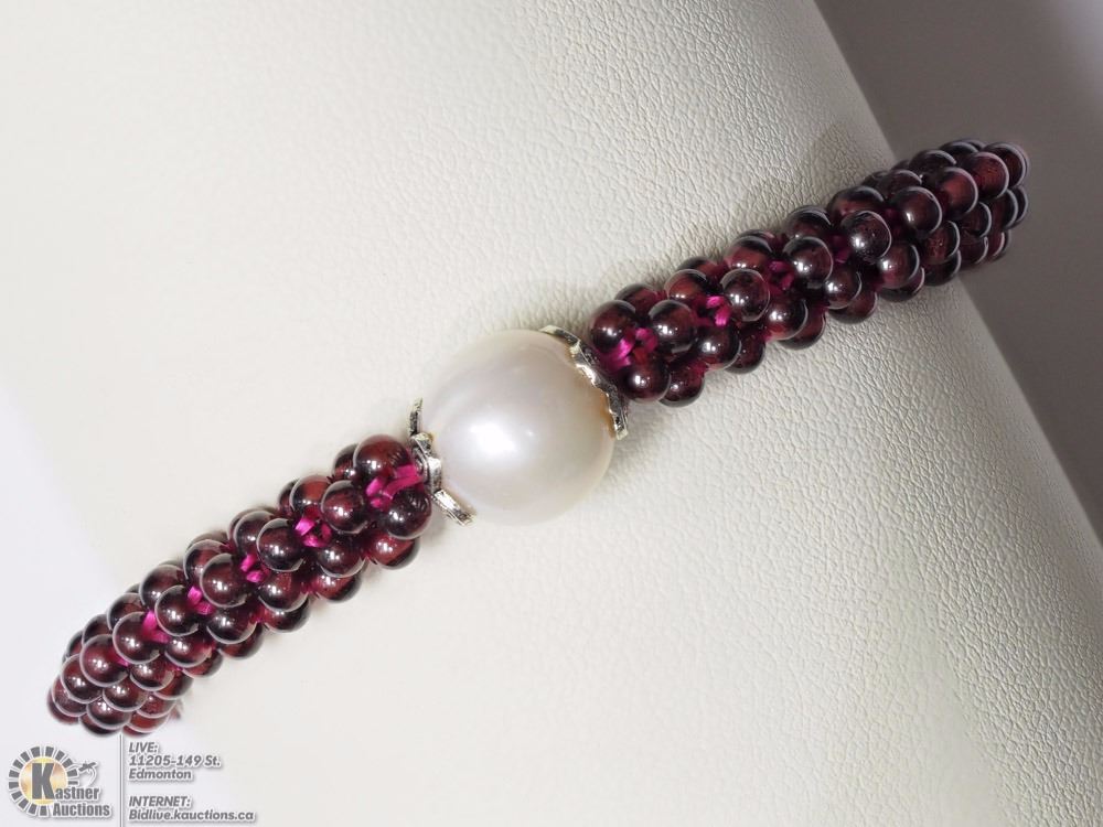 (42 - NN4): NATURAL GARNET FRESHWATER PEARL BRACELET