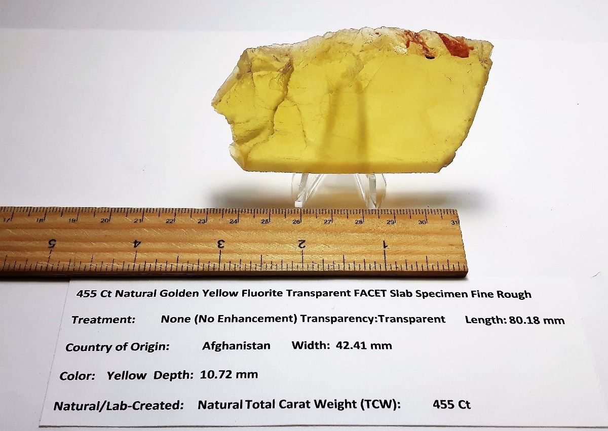 TRANSPARENT SLAB CUT 455 CT FROM AFGHANISTAN WITH DISPLAY STAND