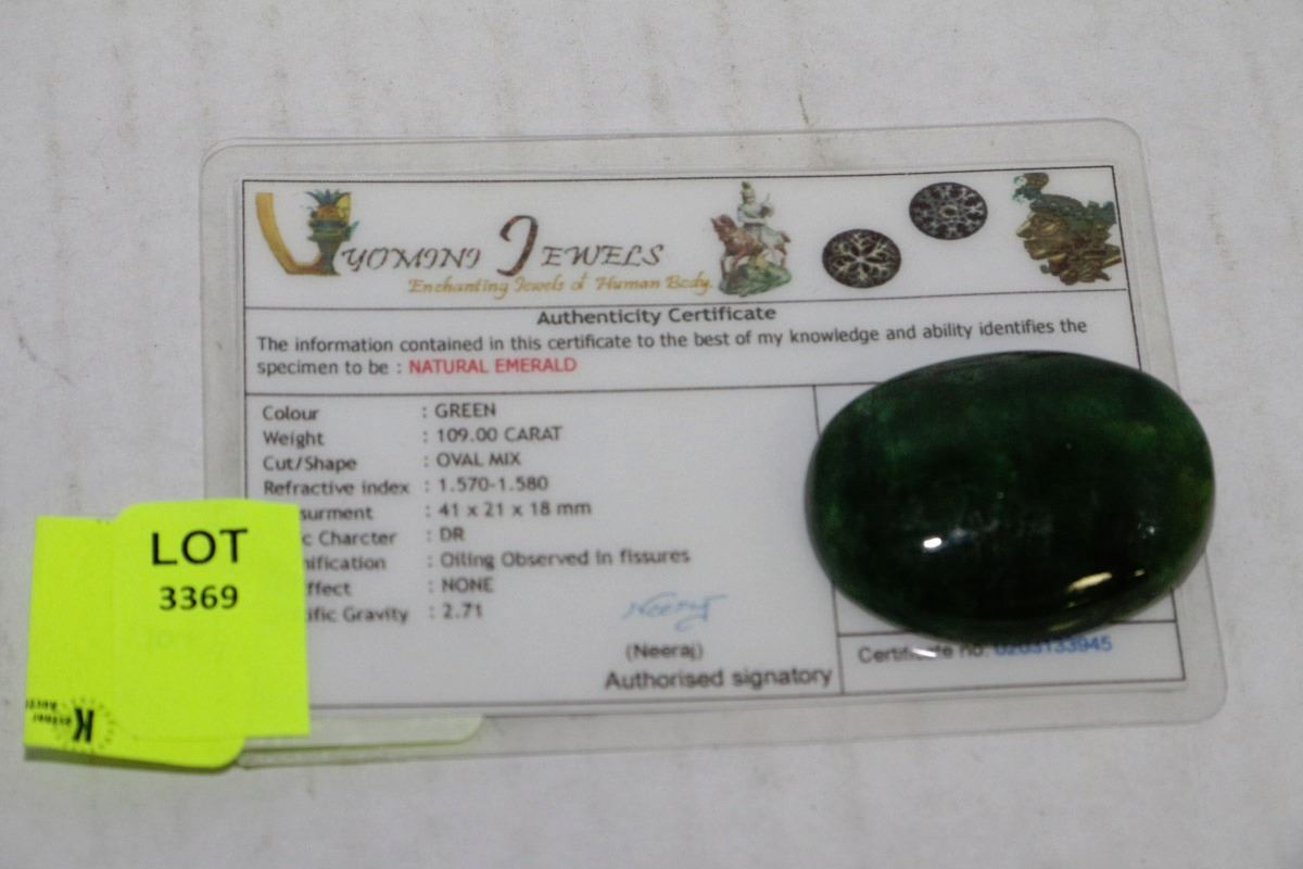 NATURAL GREEN EMERALD 109CT WITH/ COA