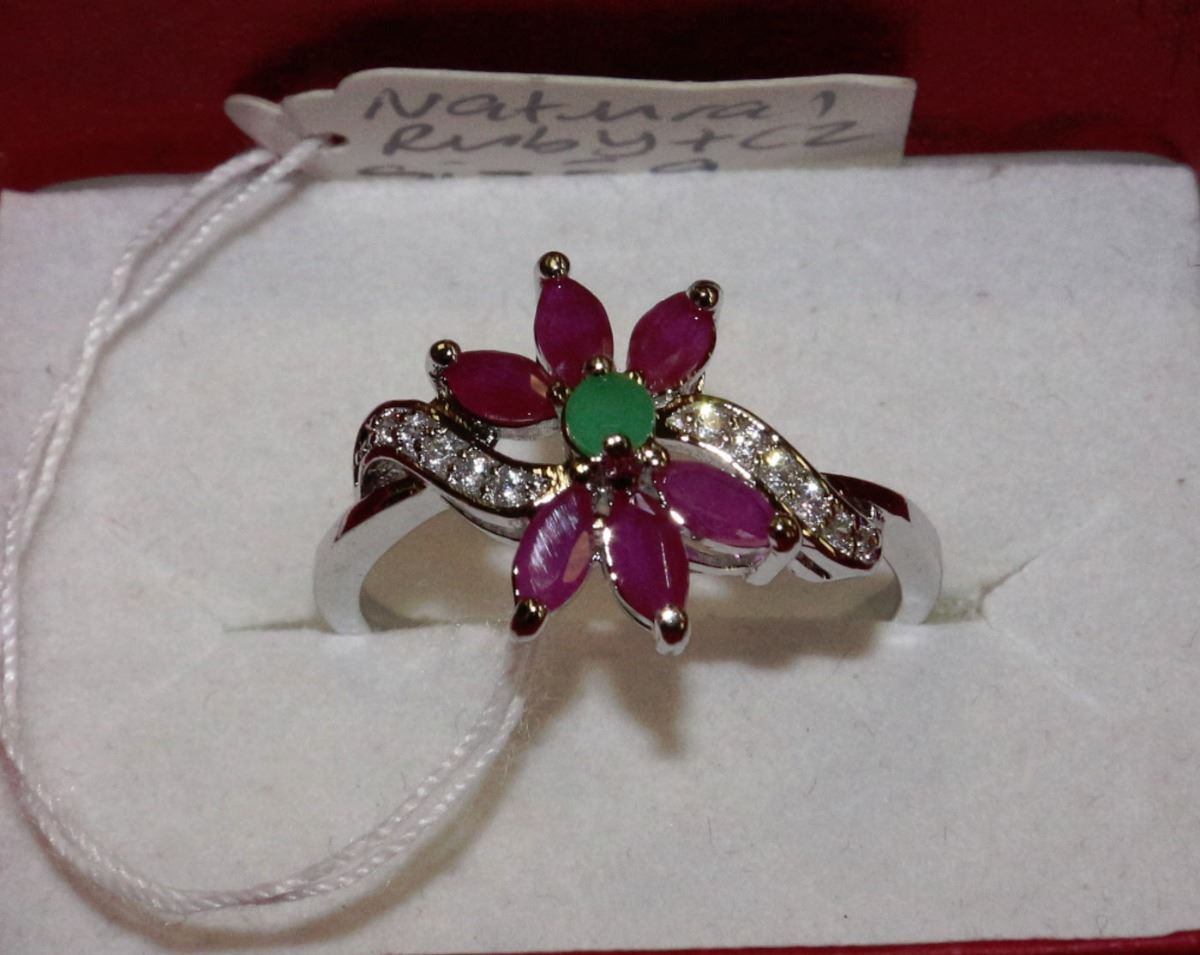 NATURAL RUBY & CZ RING .925 SILVER SIZE 9