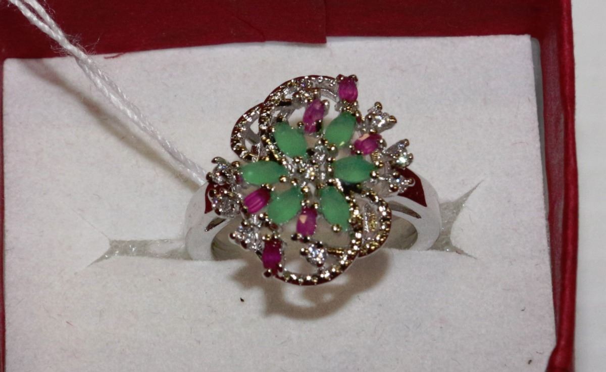 NATURAL RUBY,EMERALD AND CZ RING .925 SIZE 5.5