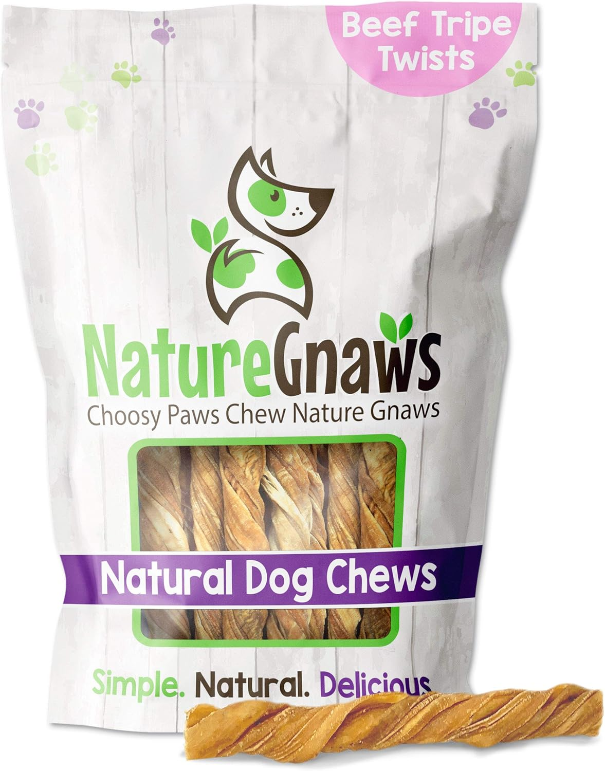 NATURE GNAWS TRIPE TWISTS FOR DOGS - PREMIUM NATURAL BEEF STICKS - SIMPLE SINGLE INGREDIENT CRUNCHY DOG CHEW TREATS - RAWHIDE FREE 5 COUNT (PACK OF 1)