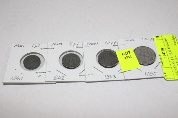 NAZI COINS 1,5,10,50 PFENNING 1935,40,42,43 X 4
