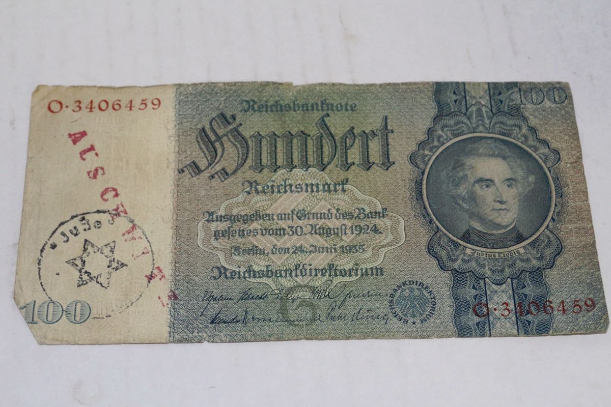 NAZI WWII 100 MARK STAMPED AUSCHWITZ JUD