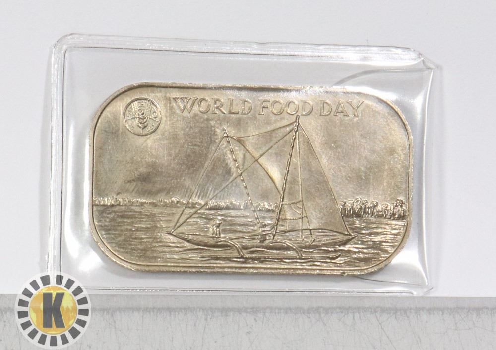 TONGA ODD RECTANGULAR SHAPE 1 PA'ANGA COIN FROM 1981. COMMEMORATING THE UNITED NATIONS WORLD FOOD DAY. ***ITEM LOCATED IN LETHBRIDGE AB