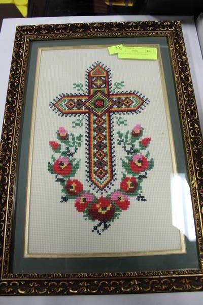NEEDLE POINT CROSS FRAMED