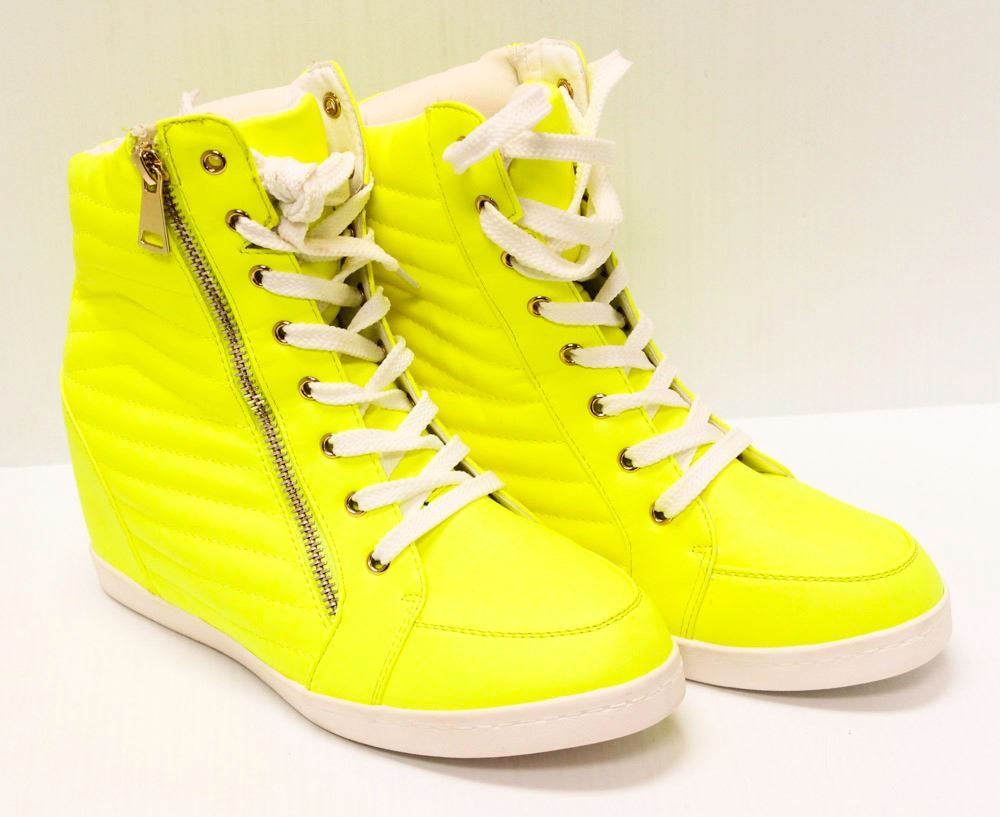 NEON YELLOW ZIPPERED HIGHTOP SNEAKERS SIZE 7