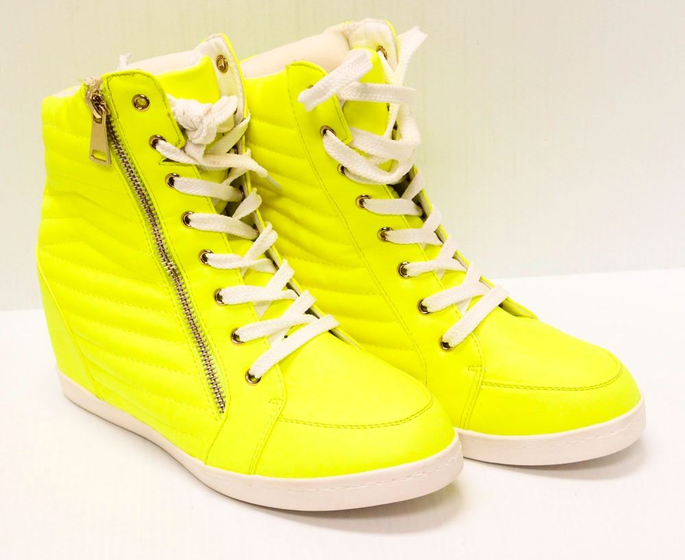 NEON YELLOW ZIPPERED HIGHTOP SNEAKERS SIZE 9