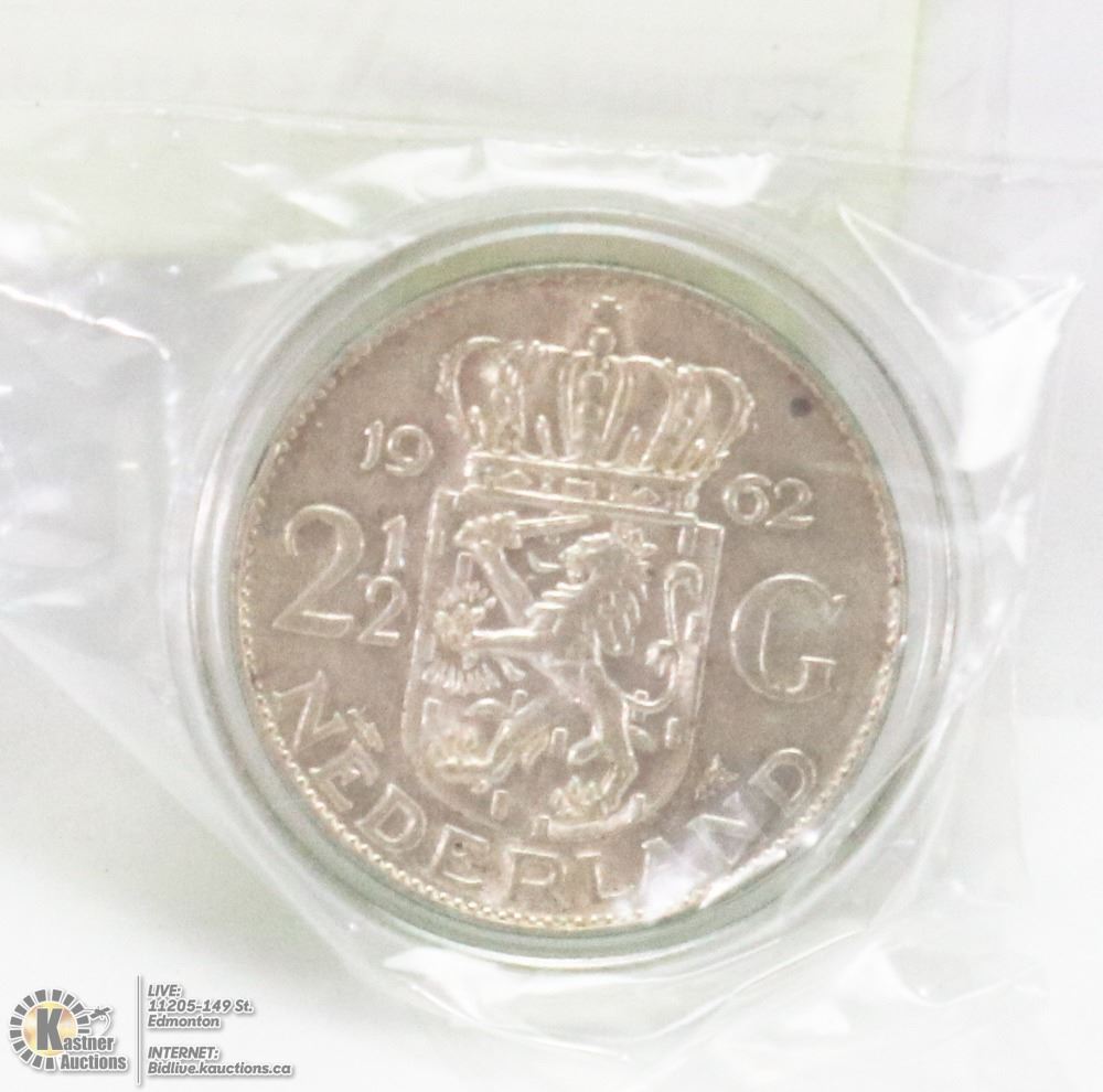 NETHERLANDS 2.5 GILDER 1962 COIN.