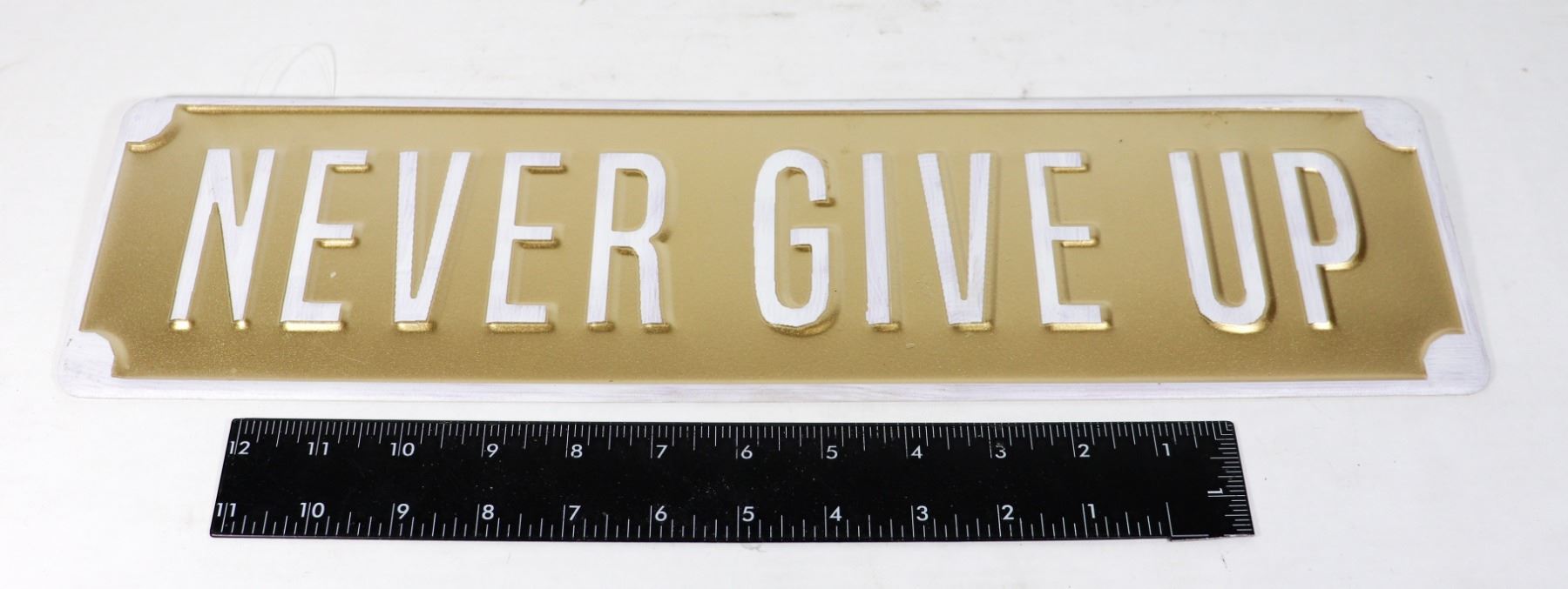 "NEVER GIVE UP" DECORATIVE LICENSE PLATE