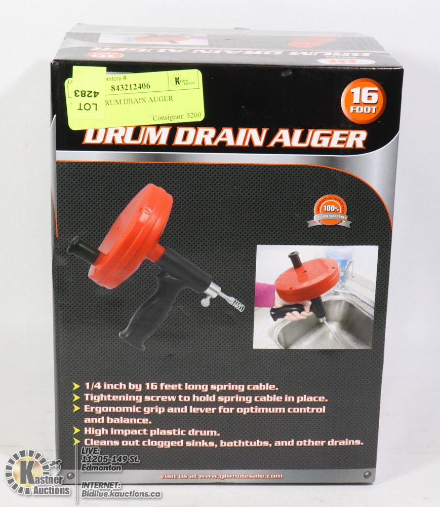 NEW 1/4" X 16' DRUM DRAIN AUGER