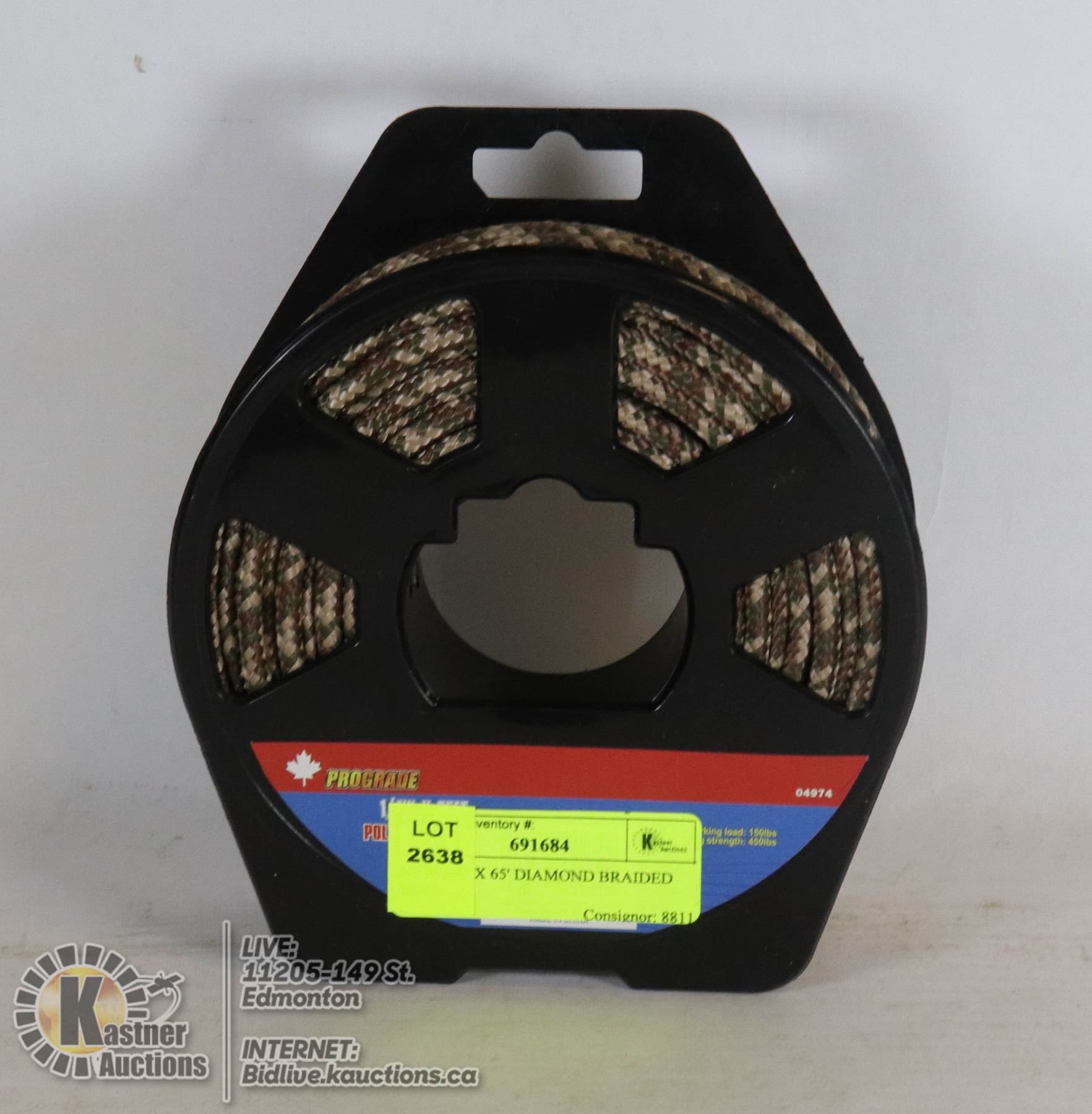 NEW 1/4" X 65' DIAMOND BRAIDED ROPE