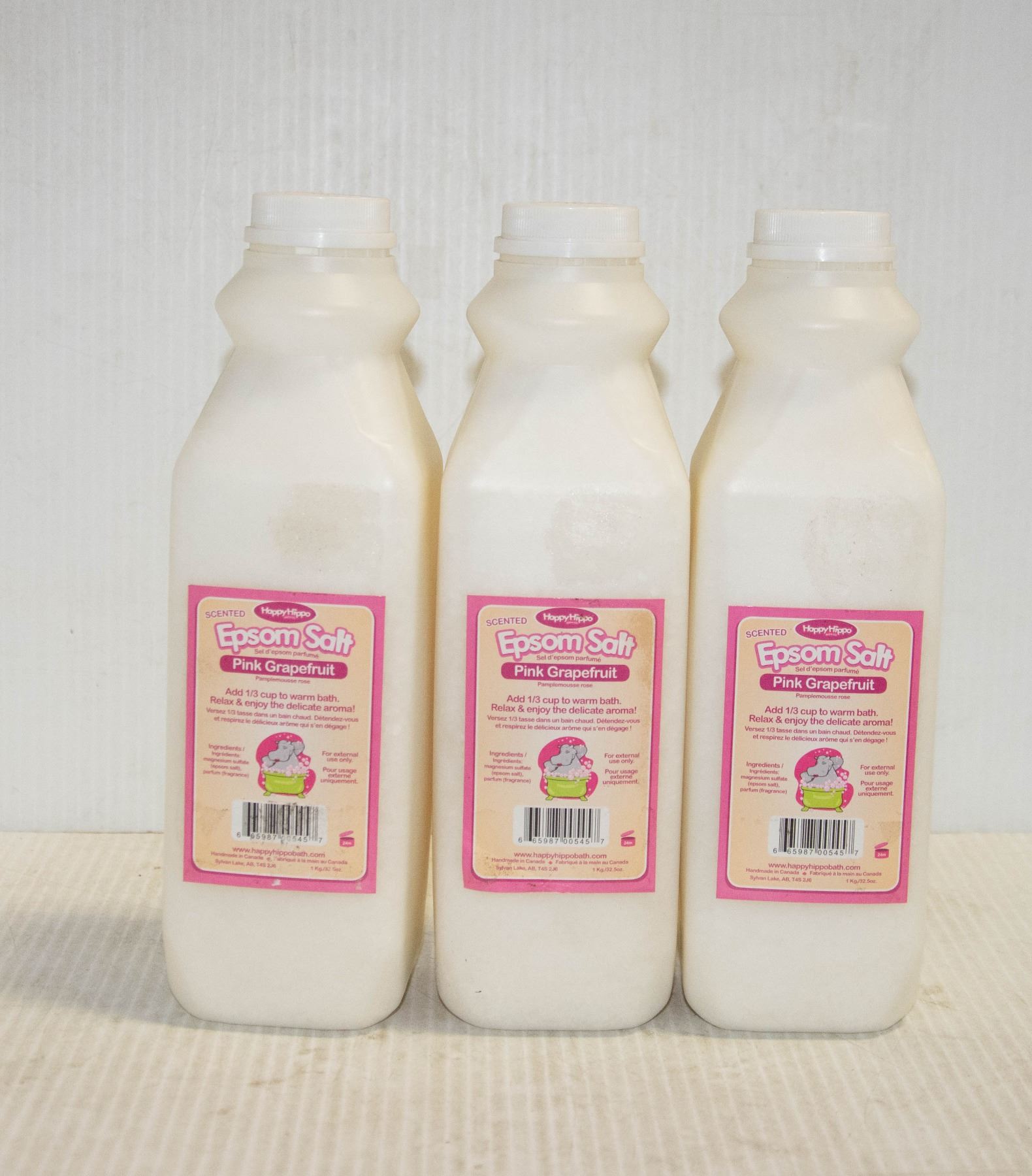 1 FLAT OF 3 1KG CONTAINERS OF HAPPY HIPPO BATH SALTS PINK GRAPEFRUIT SCENT 3 EPSOM SALT**ALL ITEMS MUST BE REMOVED BY 5PM MONDAY, SEPTEMBER 17, 2022. ALL REMAINING ITEMS WILL BE SUBJECT TO A $6.00 PER DAY STORAGE CHARGE. ANY ITEMS REMAINING AFTER MONDAY, SEPTEMBER 17, 2022 WILL BE CONSIDERED FORFEITED. NO REFUNDS WILL BE ISSUED FOR FORFEITED ITEMS. TO SCHEDULE A PICK UP APPOINTMENT CLICK HERE