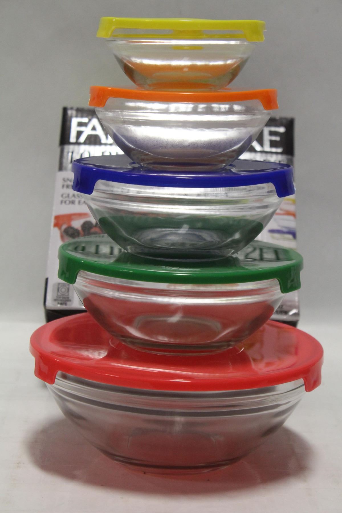 NEW 10 PIECE GLASS BOWL SET W/ BPA FREE LIDS