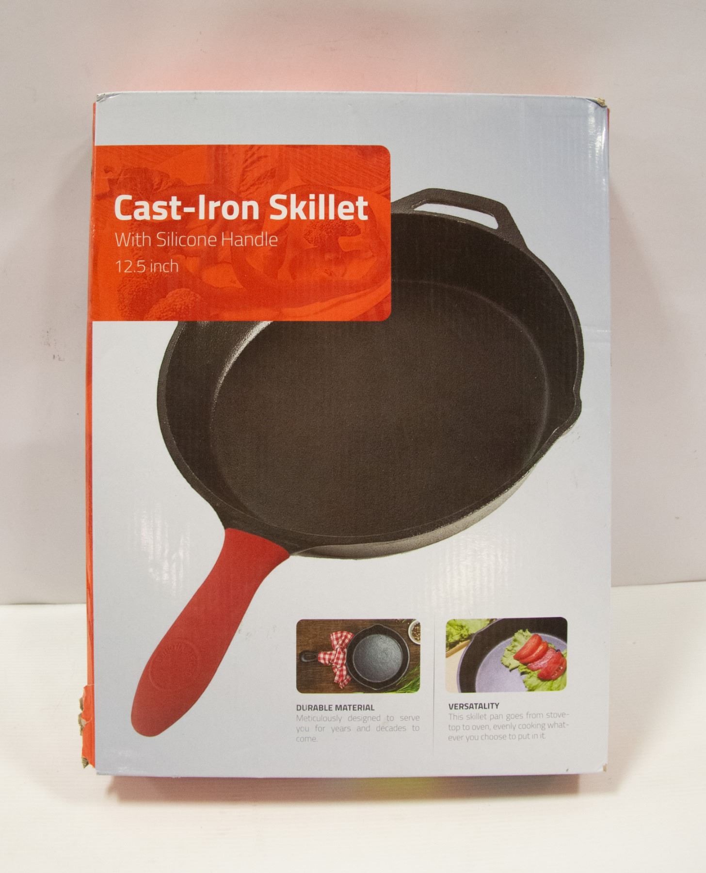 NEW 12.5" CAST IRON SKILLET W/SILICONE HANDLE