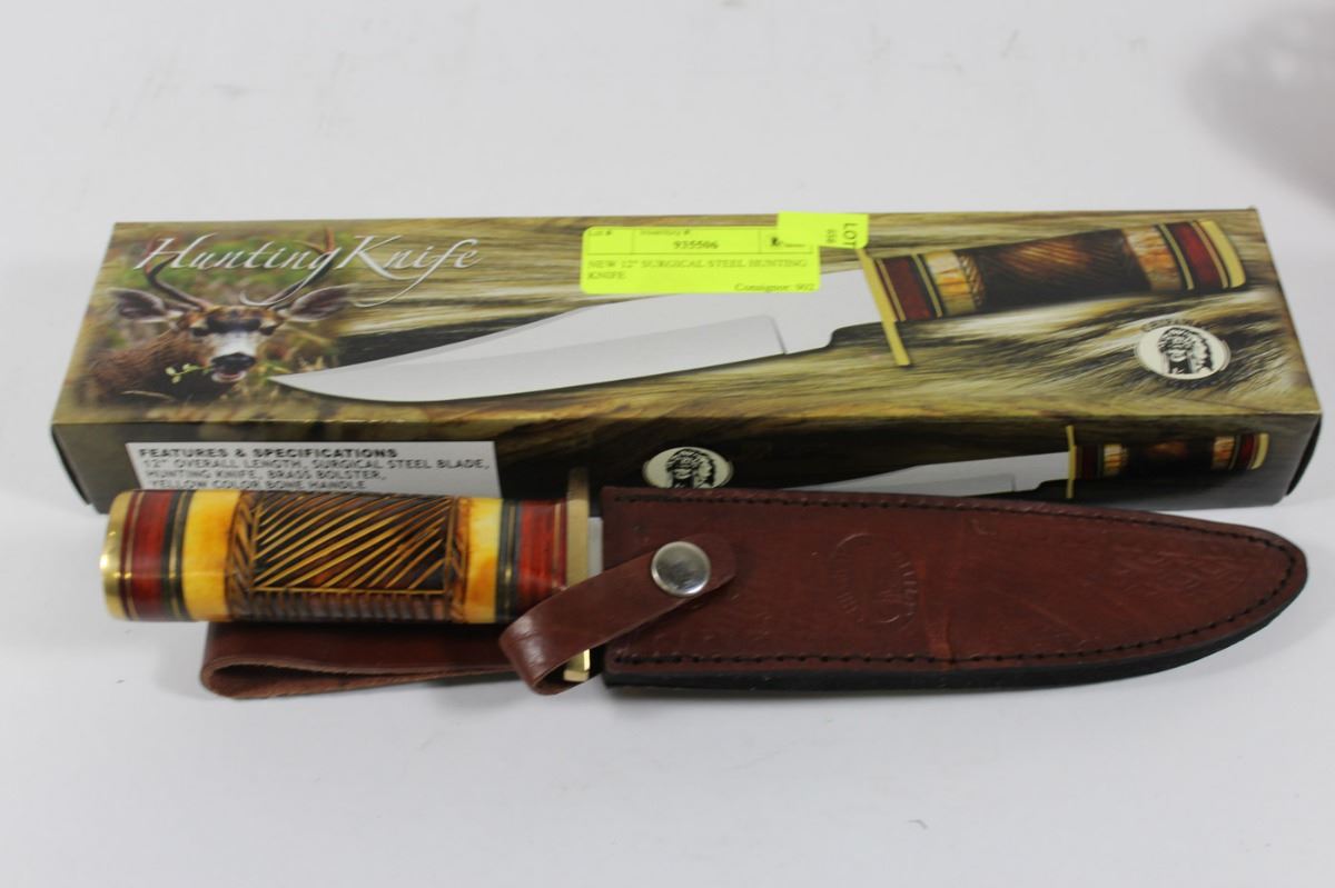 W/BRASS BOLSTER, BONE HANDLE & SHEATH