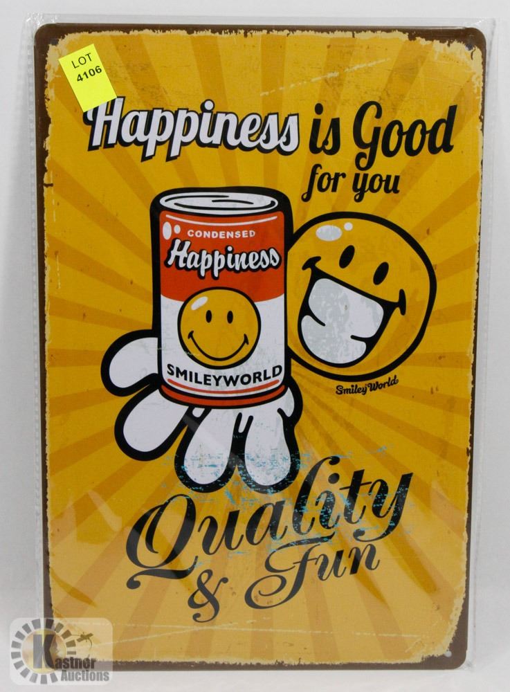 NEW 12" X 8" HAPPINESS IS GOOD FOR YOU METAL SIGN
