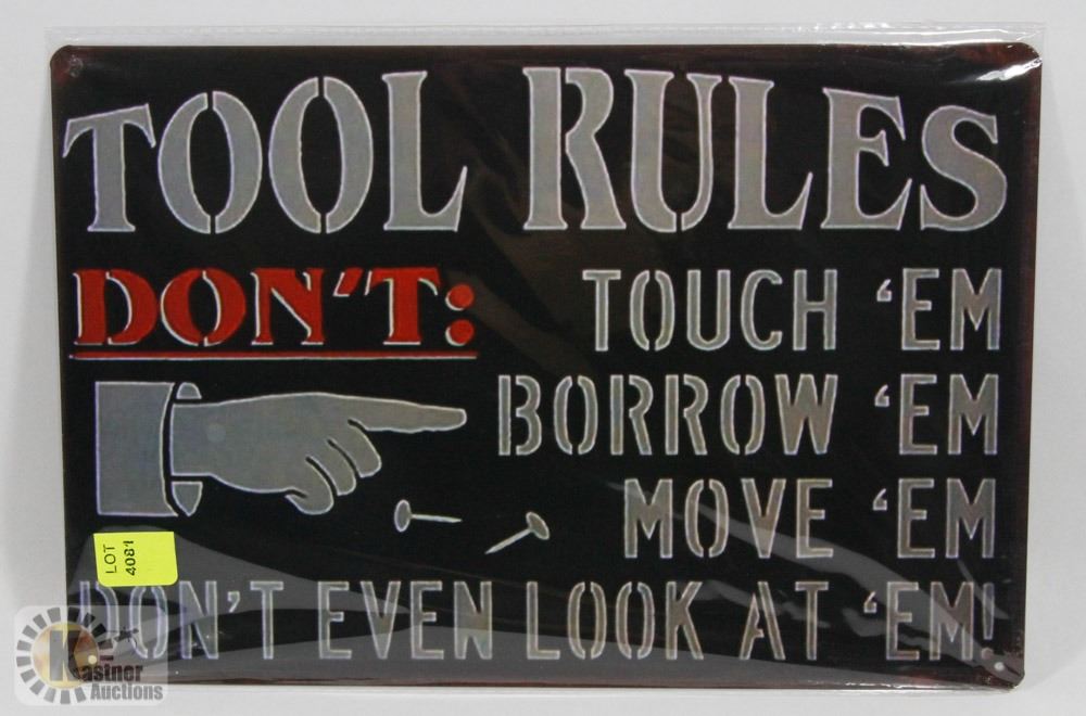 NEW 12" X 8" TOOL RULES METAL SIGN