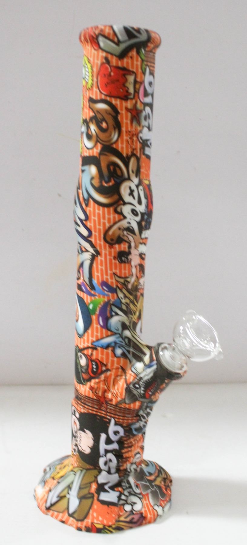 NEW 14.5" SILICONE PRINTED BONG W/ GLASS BOWL;