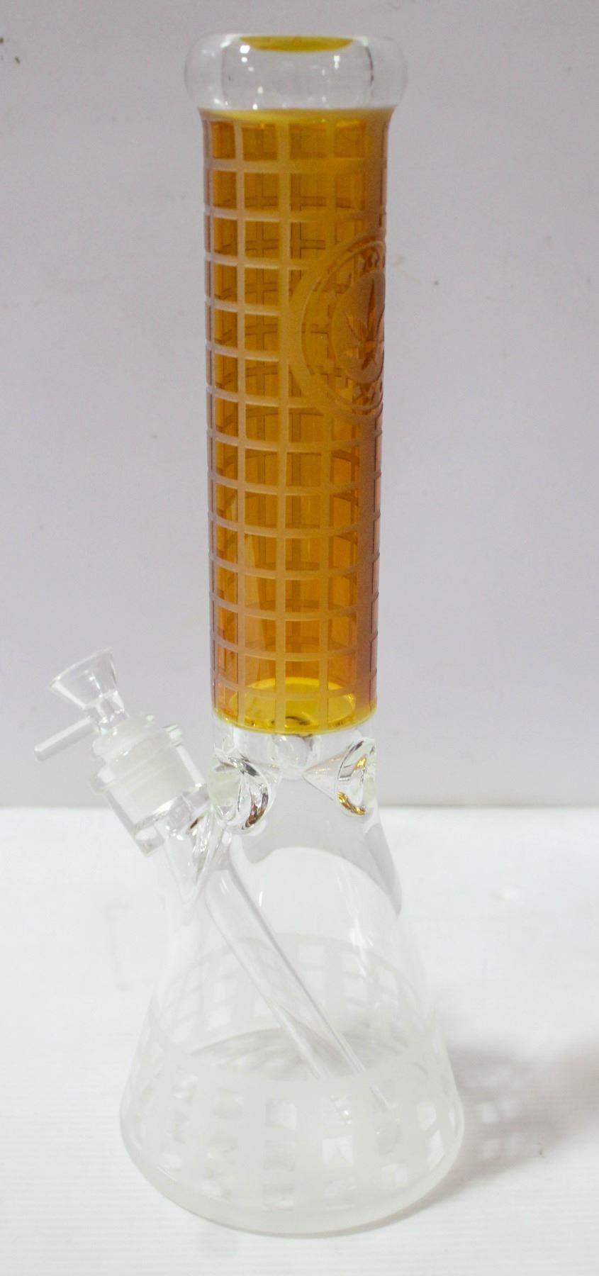 NEW 14" AMBER ETCHED GLASS BEAKER BONG