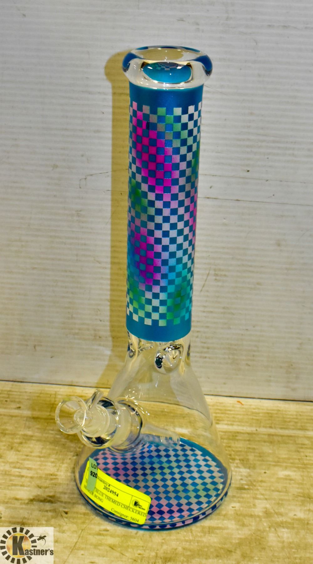 NEW 14" BLUE THEMED CHECKERED BEAKER BONG