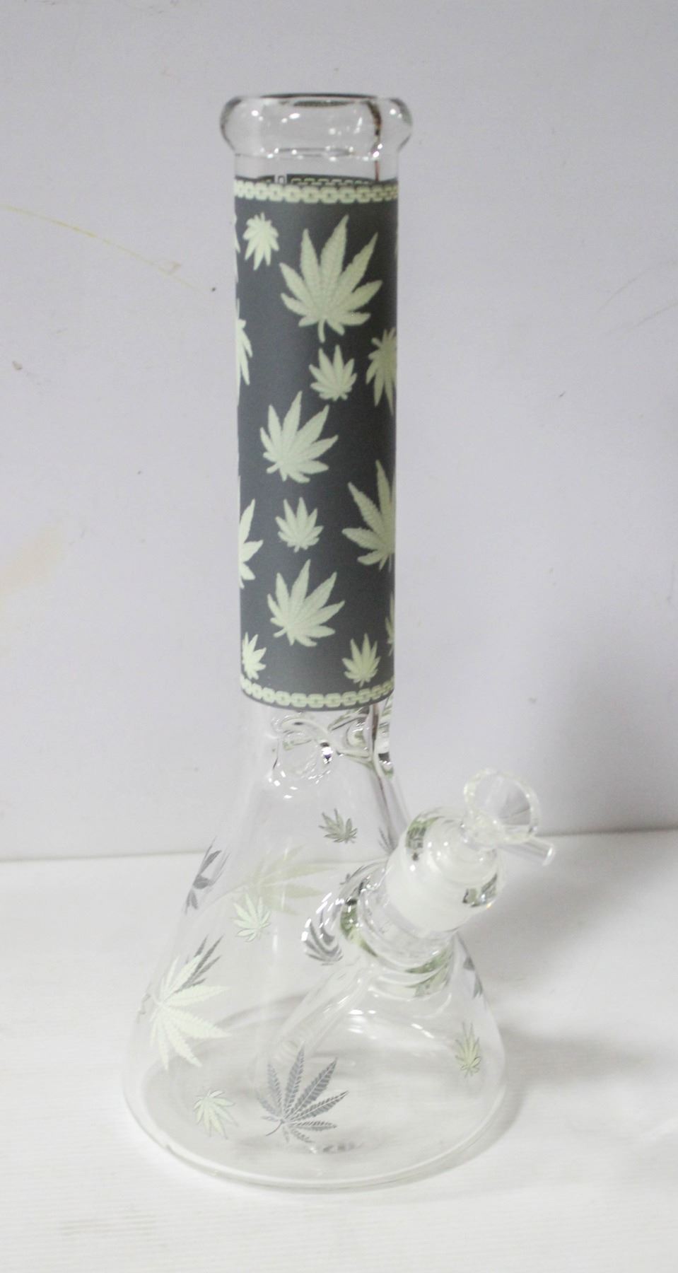 NEW 14" CLEAR GREY ETCHED BEAKER BONG