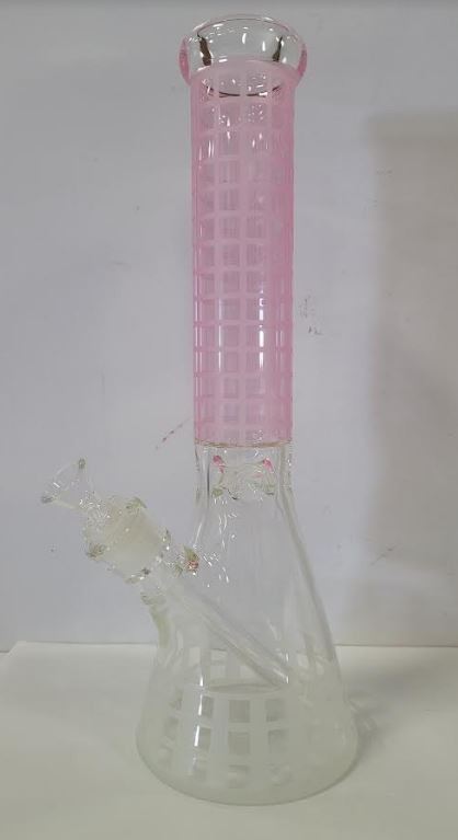 NEW 14" CLEAR + PINK ETCHED GLASS BONG