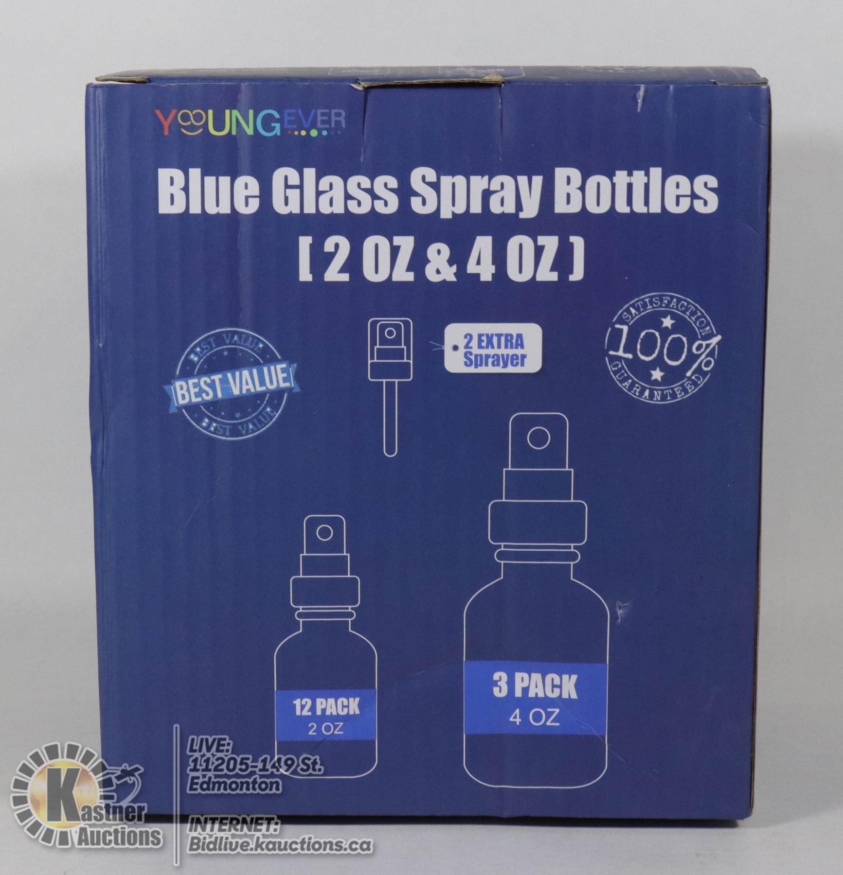 NEW 15 PC BLUE GLASS SPRAY BOTTLES