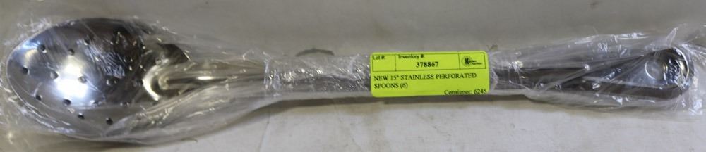 LOT OF 6 - 15" STAINLESS PERFORATED SPOONS