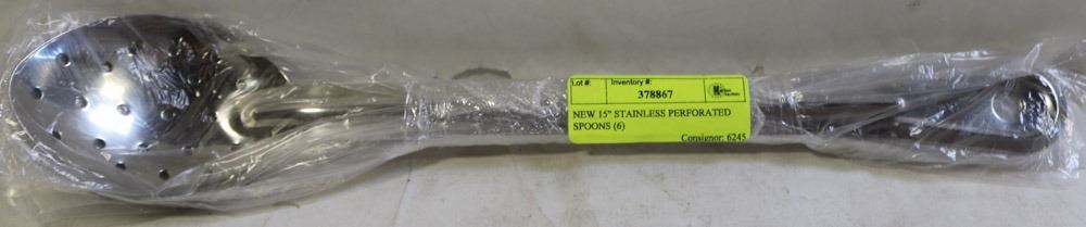 LOT OF 6 - 15" STAINLESS PERFORATED SPOONS