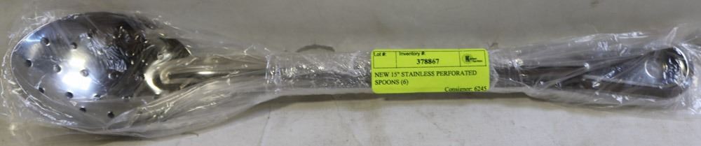 NEW 15" STAINLESS PERFORATED SPOONS (6)