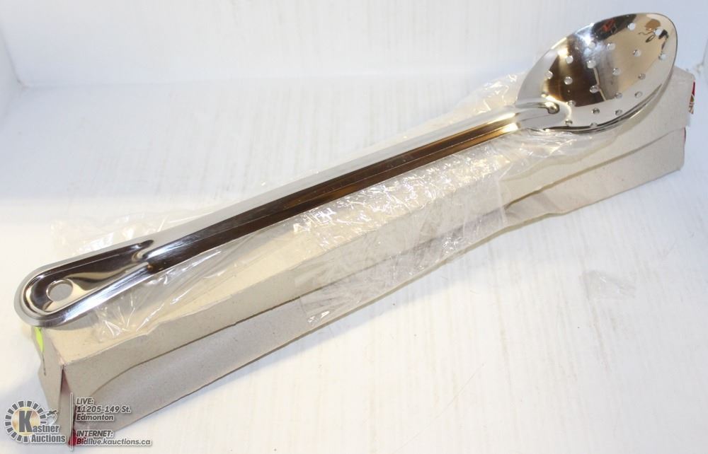 15" STAINLESS PERFORATED SPOONS - LOT OF 12. ON CHOICE