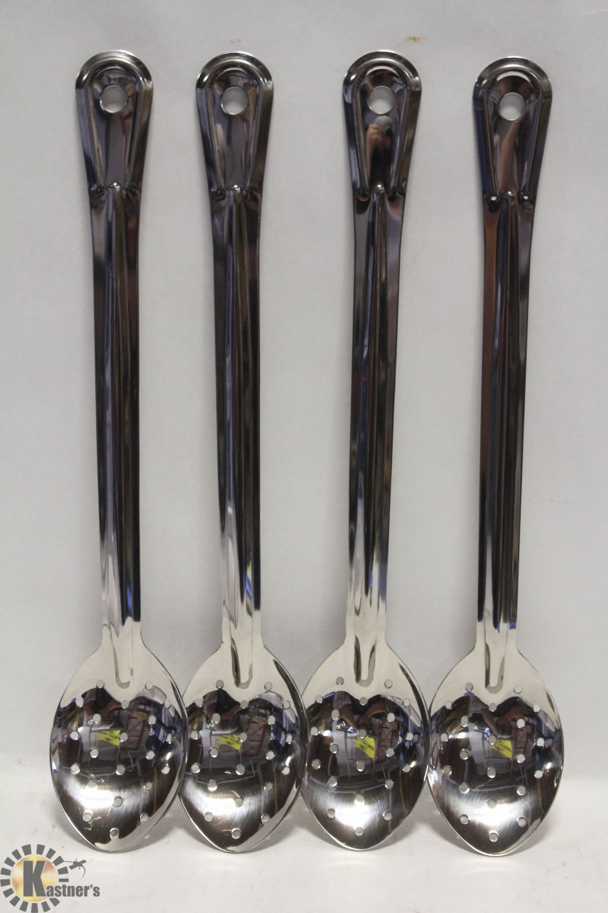 NEW 15" STAINLESS PERFORATED SPOONS - LOT OF 4, COMMERCIAL