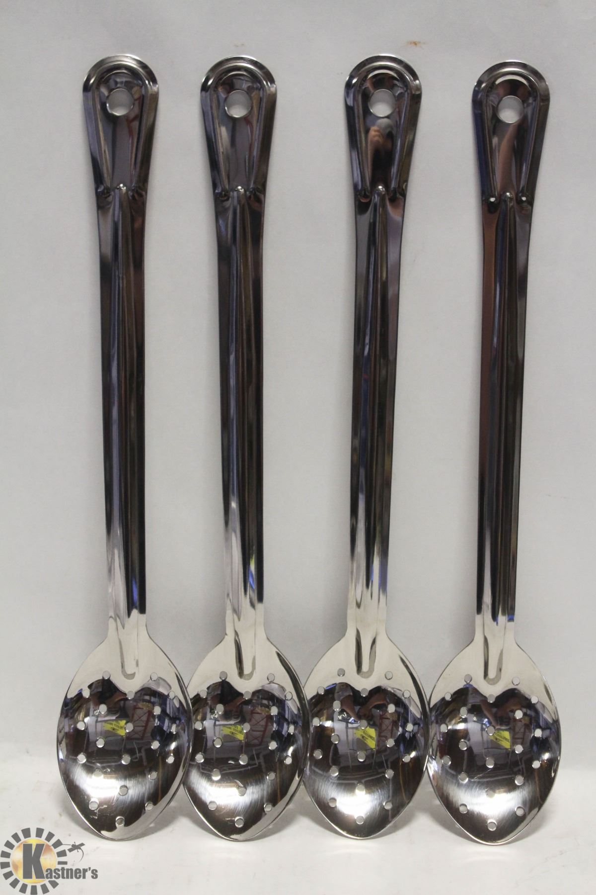 NEW 15" STAINLESS PERFORATED SPOONS - LOT OF 4, COMMERCIAL