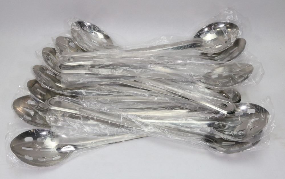 15" STAINLESS SLOTTED SPOONS, LOT OF 12