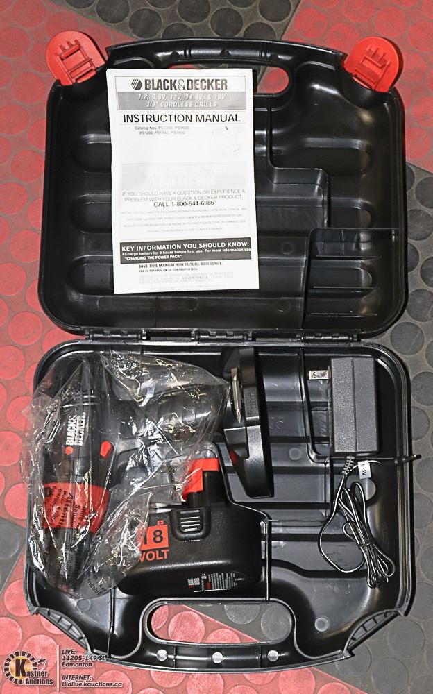 NEW IN CASE WITH CHARGER AND BATTERY,MANUAL AND CASE. BLACK AND DECKER DRILL-TOOLS